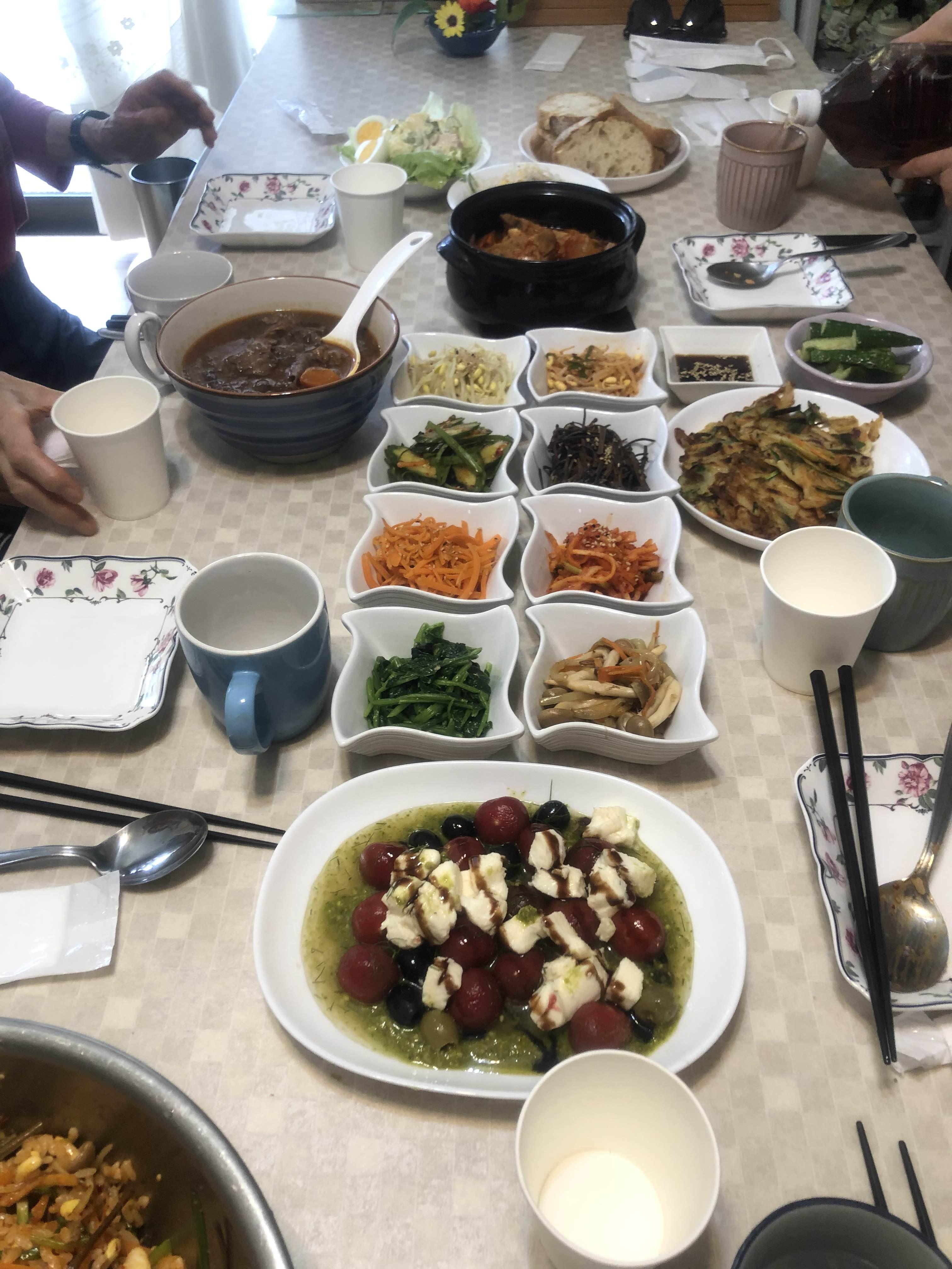 평일날 근무 없는 날을 맞추는게 그리 쉬운 일이 아니기에 벼르고 별러서 겨우 수요일 런치 파티!라고 정하고 모두들 기대를 하며 기다렸는데 갑자기 코로나 때문에 3년 동안 만나지 못했던 시어머니로부터 우리 집으로 와도 되냐는 갑작스러운 연락이 왔다
