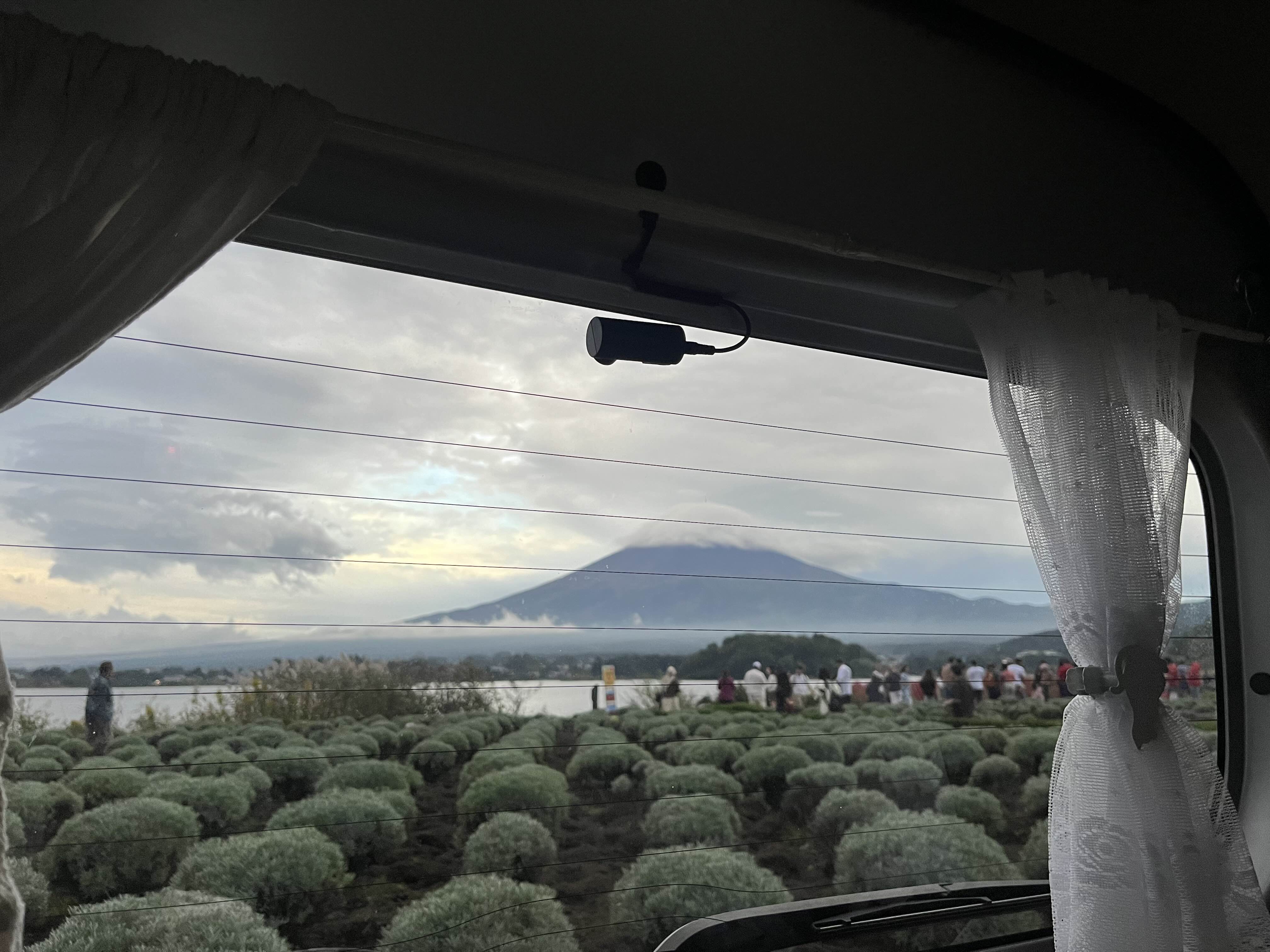 산책을 마치고 차 안에서 바라보는 후지산 ..