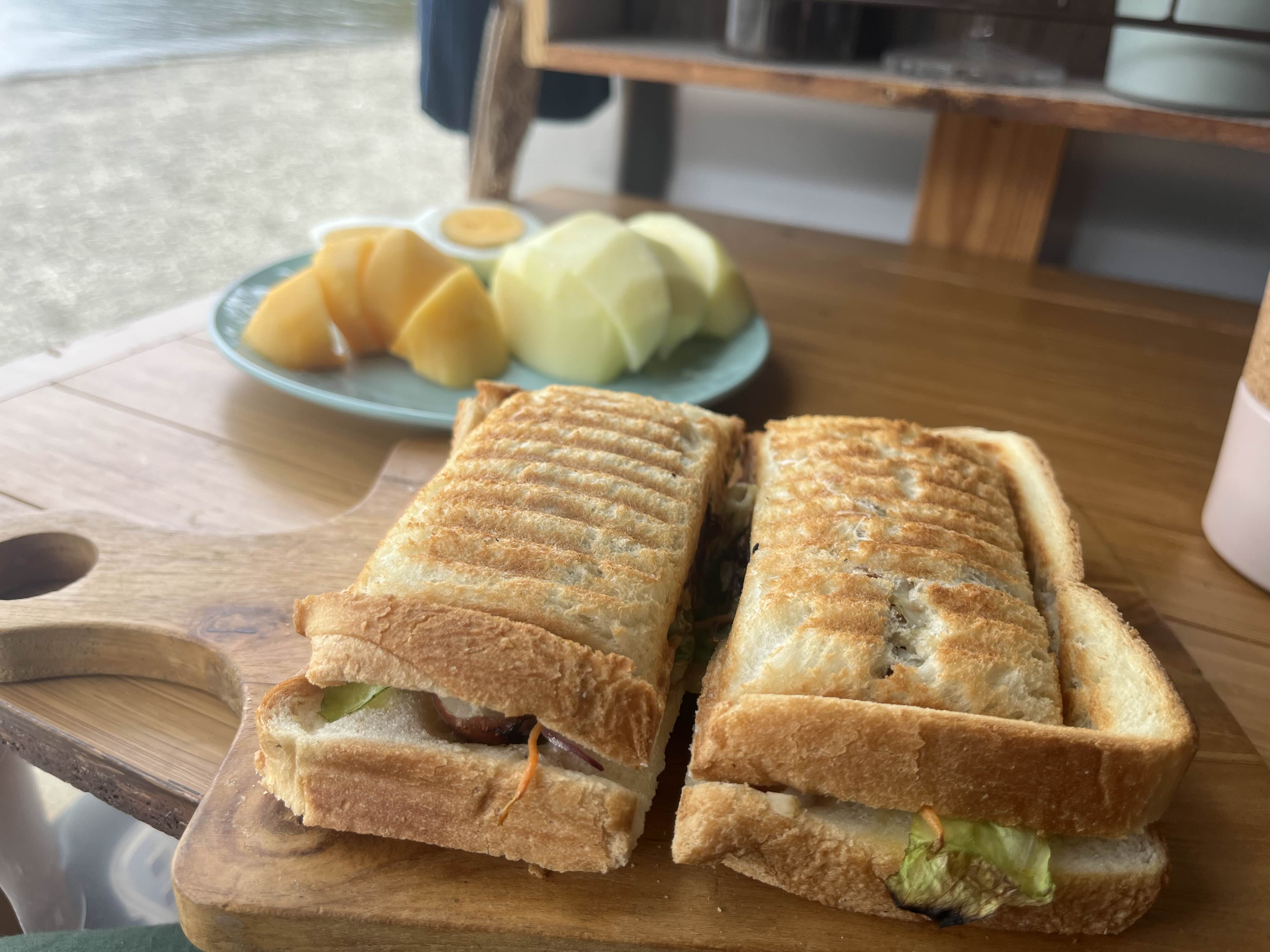 따뜻한 커피 한잔 내리고 핫 샌드를 굽고