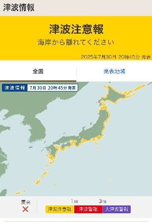 오후 8시가 넘어서야 1미터 이하인 쓰나미 주의보로 격하되었다