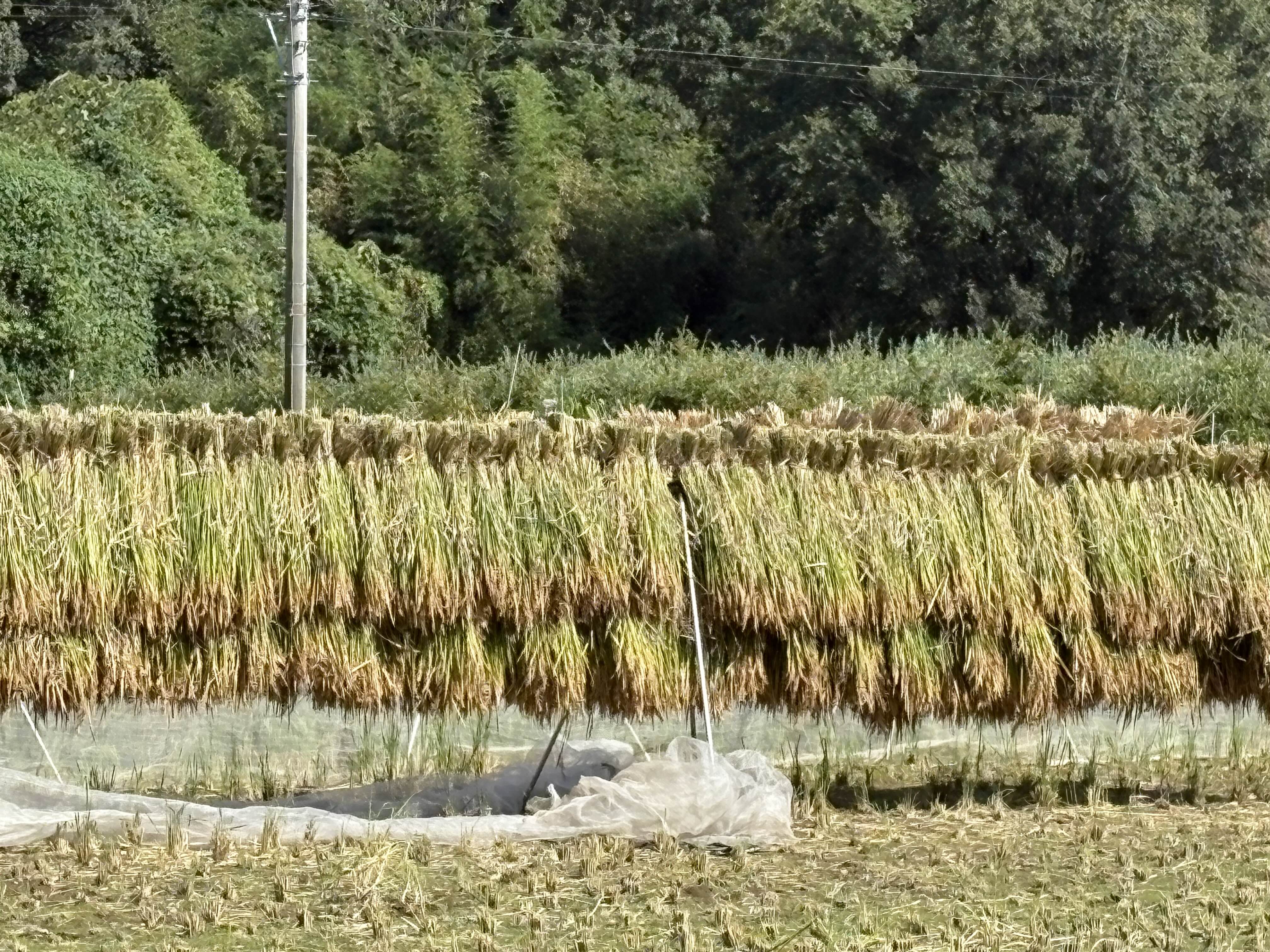 벼농사에 대한 지식 제로인 내 기억의 오류인지 모르겠지만 예전에 한국에서는 시골에 가면 볏단채 말리는 게 아니라 탈곡을 한 후 벼 낱알을 바닥에 널어서 말리는 걸 본 기억이 어렴풋이 난다