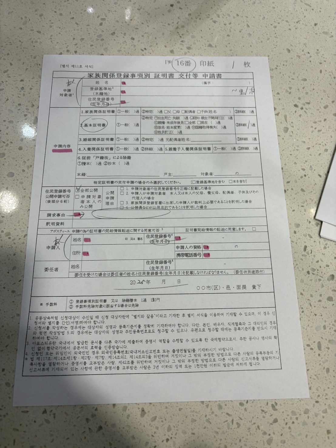 참 이상한 게 일본 부모면 필요 없는 서류들이 한쪽이 한국 사람이면 필요한 서류가 오히려 더 많아지고 복잡하다는 거..