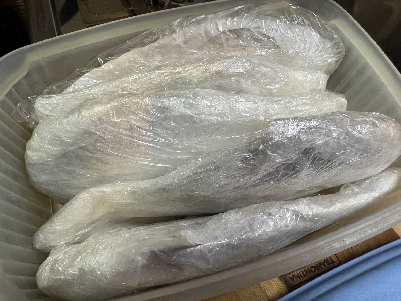 한 마리 한 마리 물기를 다 닦아 낸 후 종이 타올로 잘 감싸고 랩으로 돌돌 말았는데 배를 가르고 내장을 꺼낸 그 뱃속에도 종이타월을 하나 히마 꼭꼭 채워 둔 상태였다