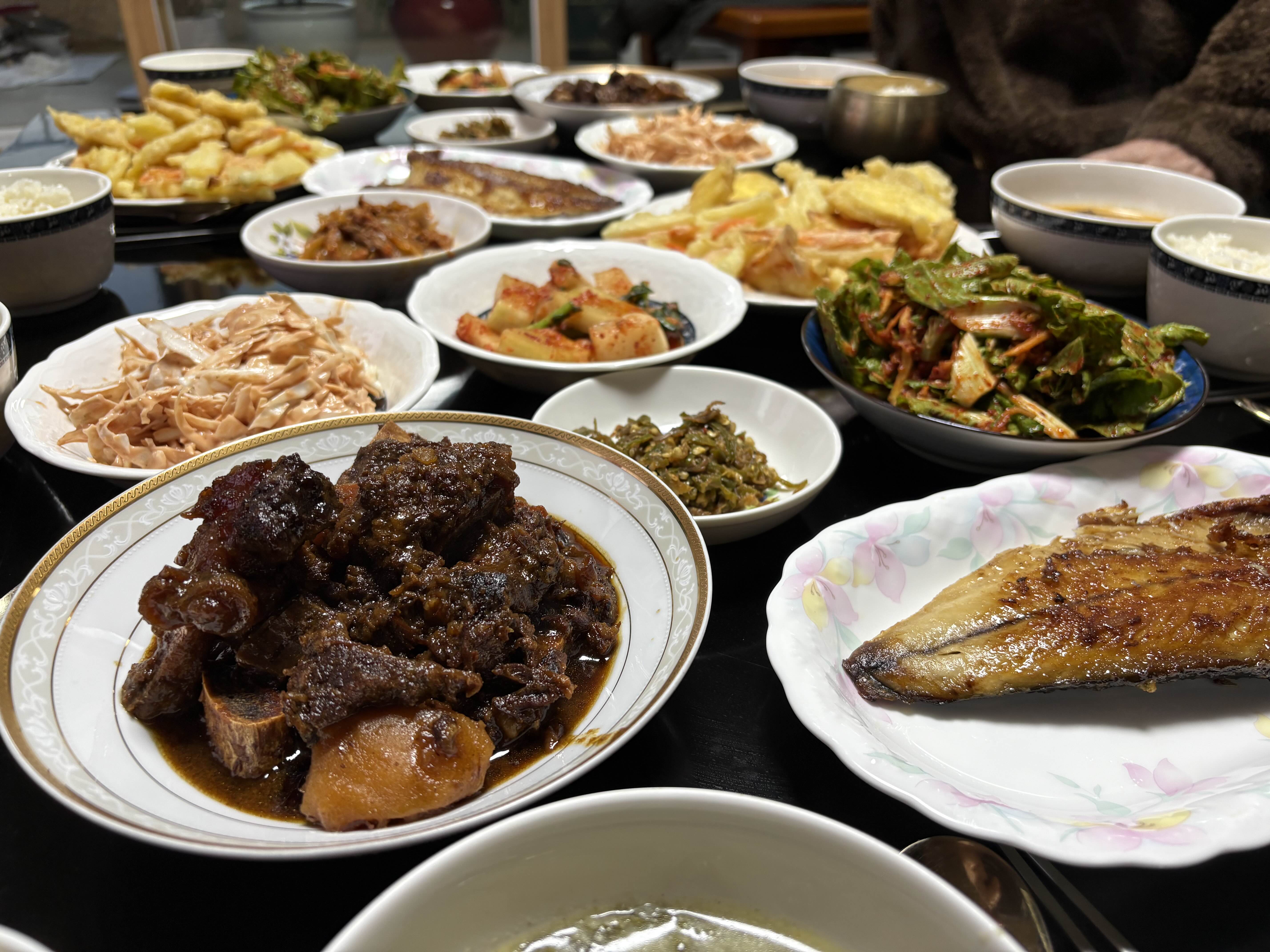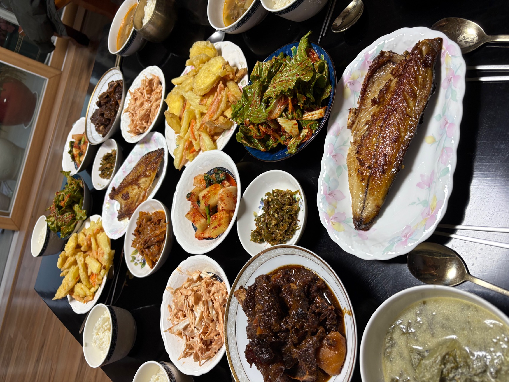 안 아픈 데가 없다고 하시면서도 간단하게 밥이랑 국만 끓이면 되실 텐데 정말 상다리가 휠 정도로 차려주셨다