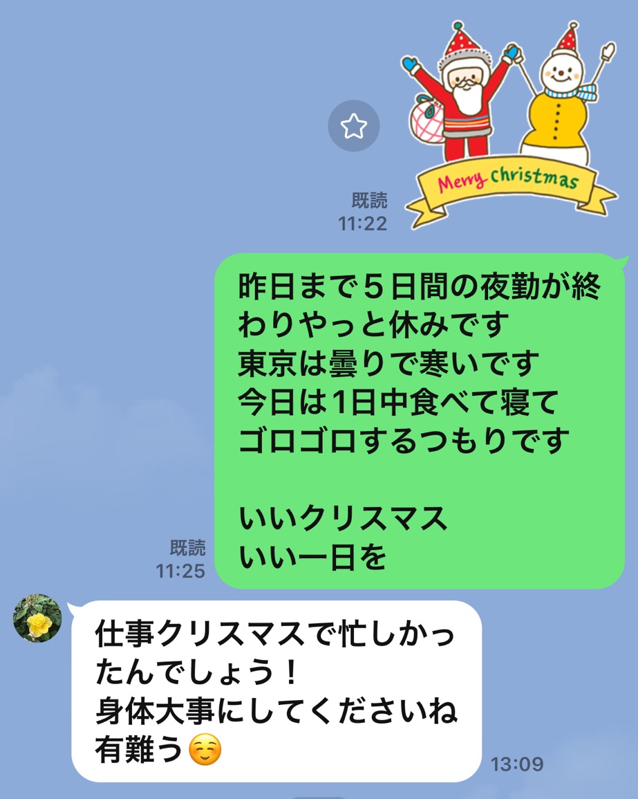 서로에게 올해도 무사히 크리스마스 시즌을 보낼 수 있었던 것에 감사의 마음을 전하며 먹고 마시며 즐거운 한 해를 보냈다