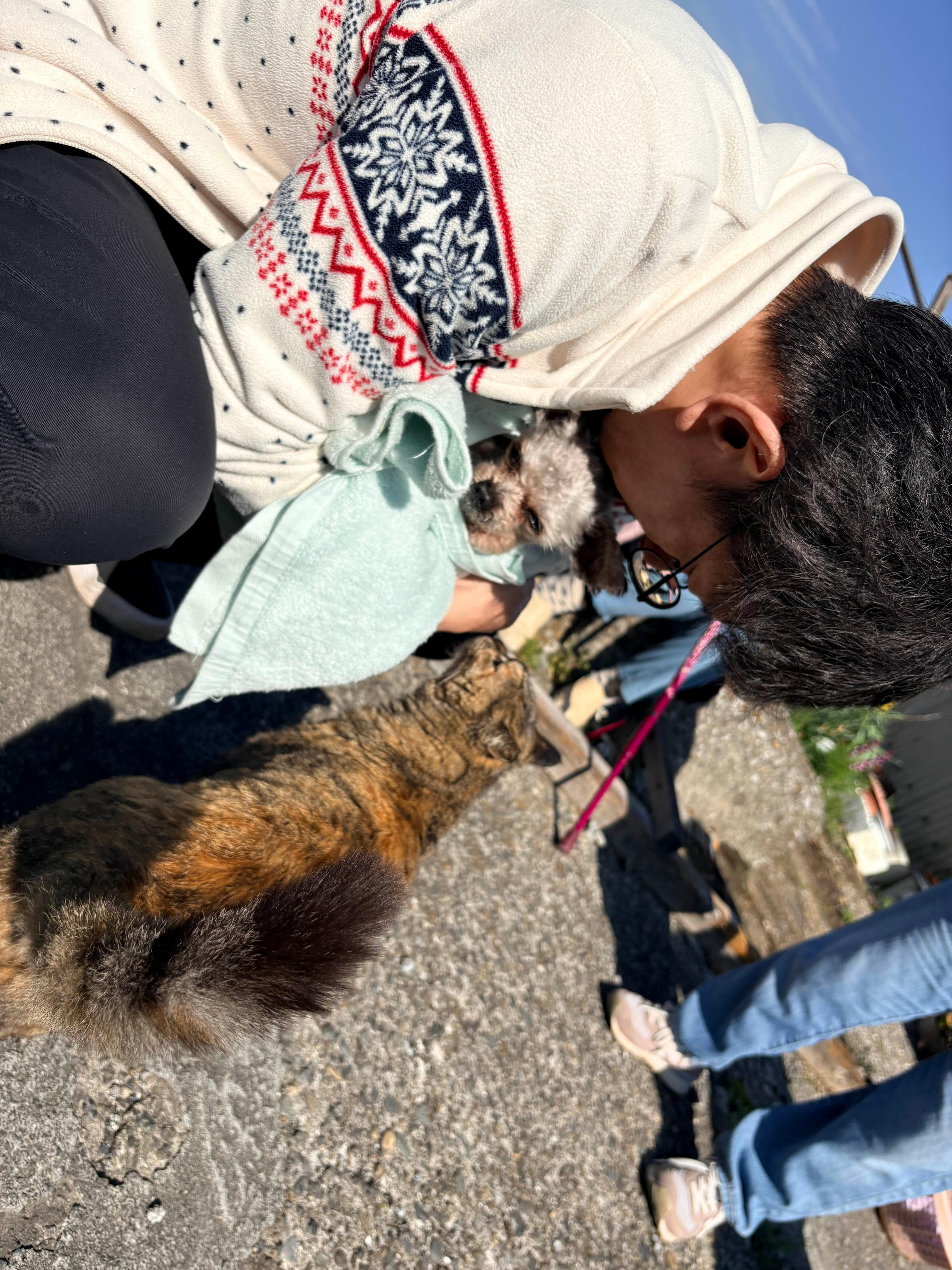 그런데 아기가 아닌 강아지를 안고 있는 걸 보시고는 박소를 하셨고 모꼬가 아직 어려서 안고 있다 생각하셔서 노견이라 걸을 수 없어서 안아서 산책을 하는 거라 설명을 하고도 한참을 서서 수다를 떨었다