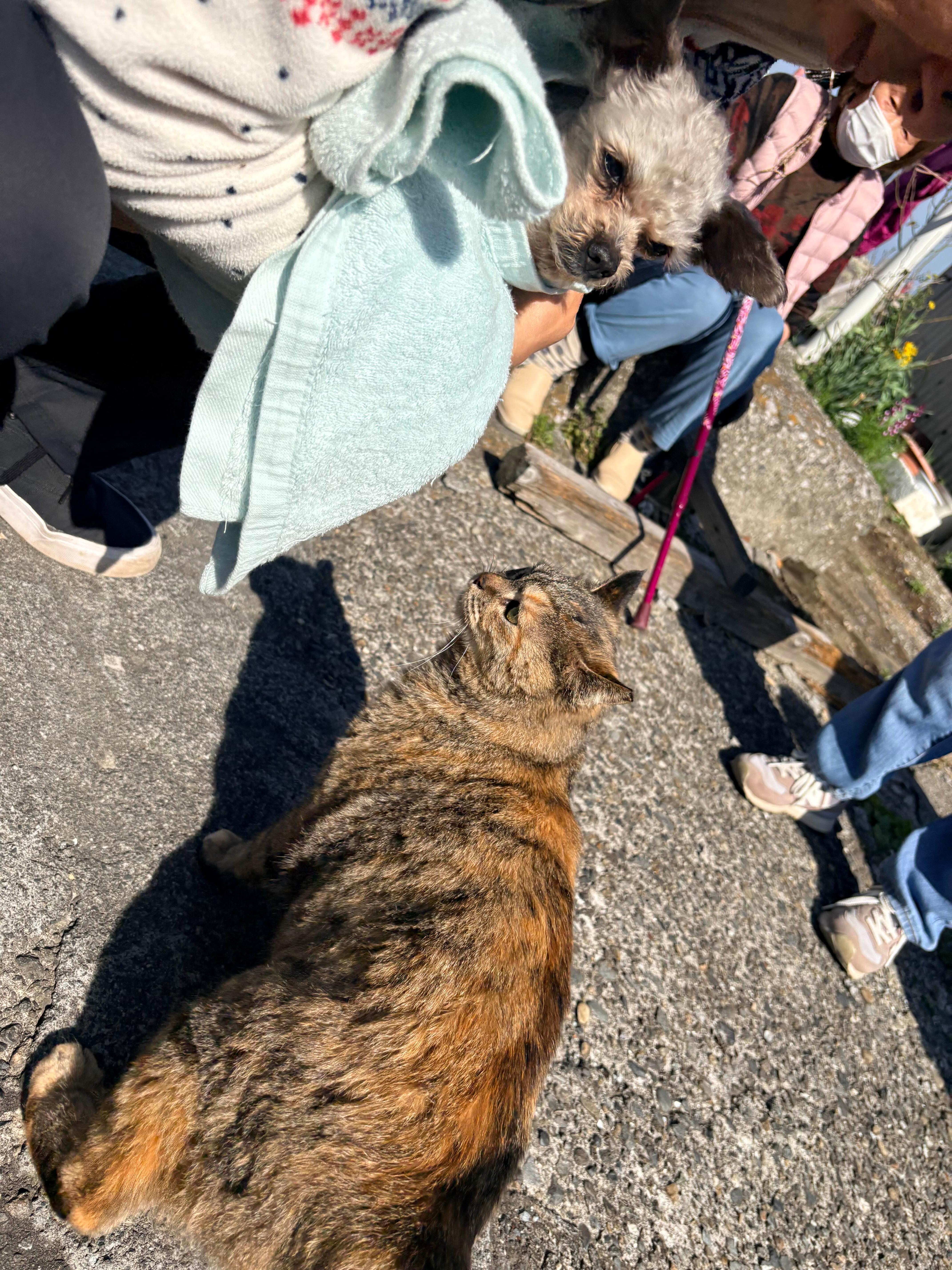 할머니의 집 앞 골목을 우리가 지나가는 거니까 우리가 먼저 こんにちは라고 인사를 건네고 지나가는데 모꼬를 저렇게 안고 있으니 할머니는 아기를 안고 있는 줄 아시고 말을 걸어오셨다