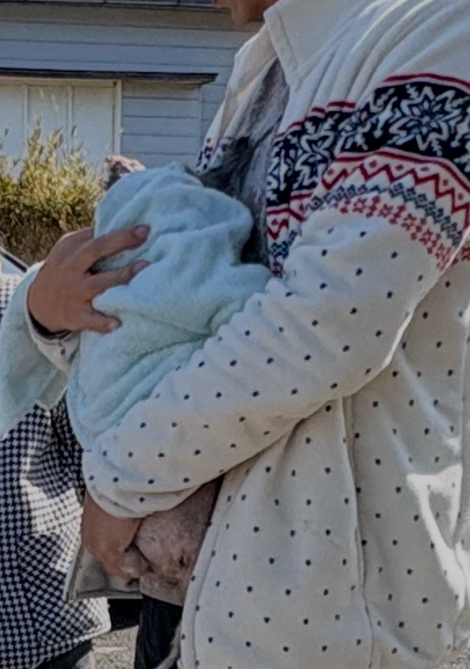 그래서 산책은 큰 타월에 잘 감싸서 아기처럼 안고서 하고 있다