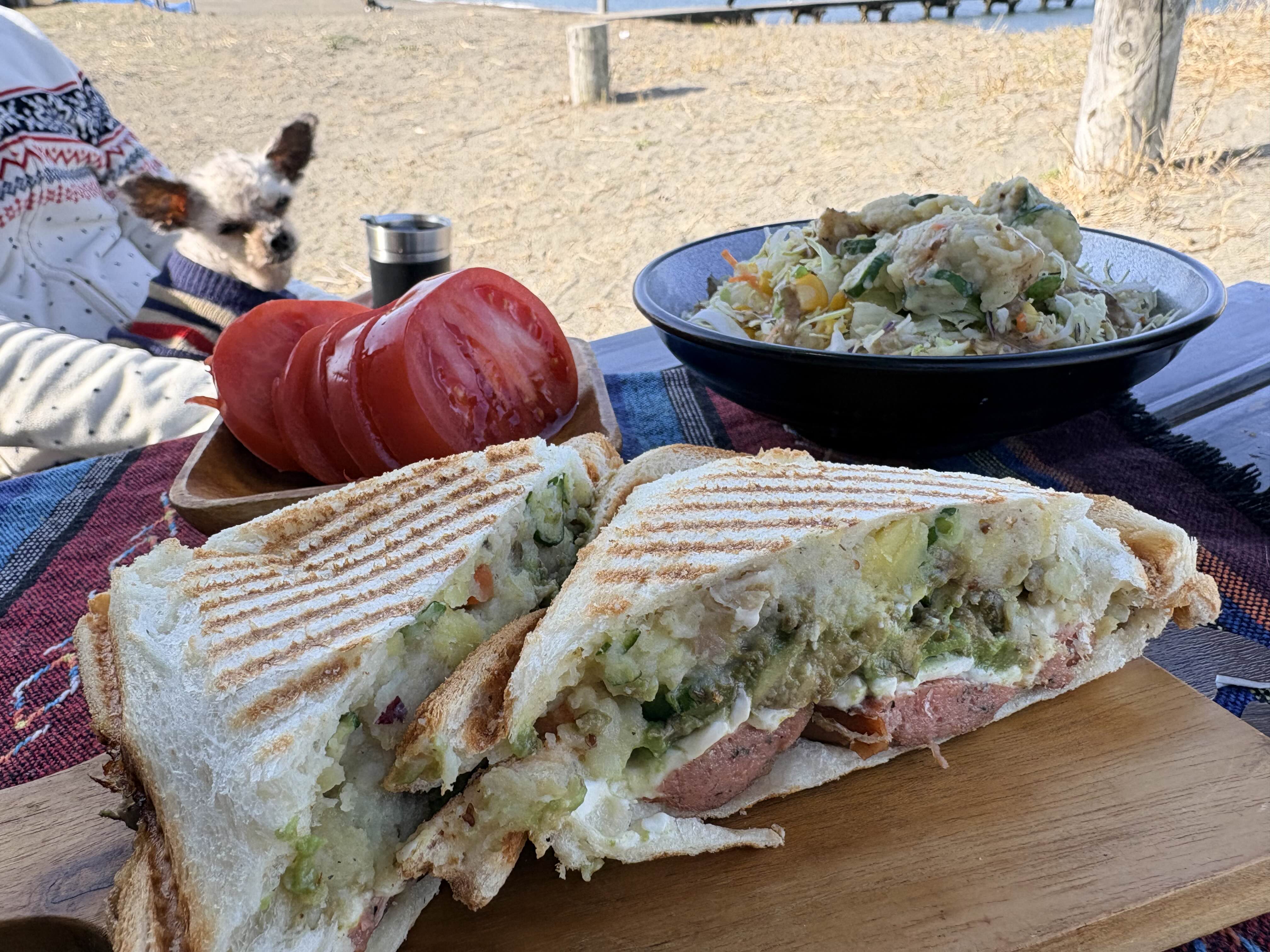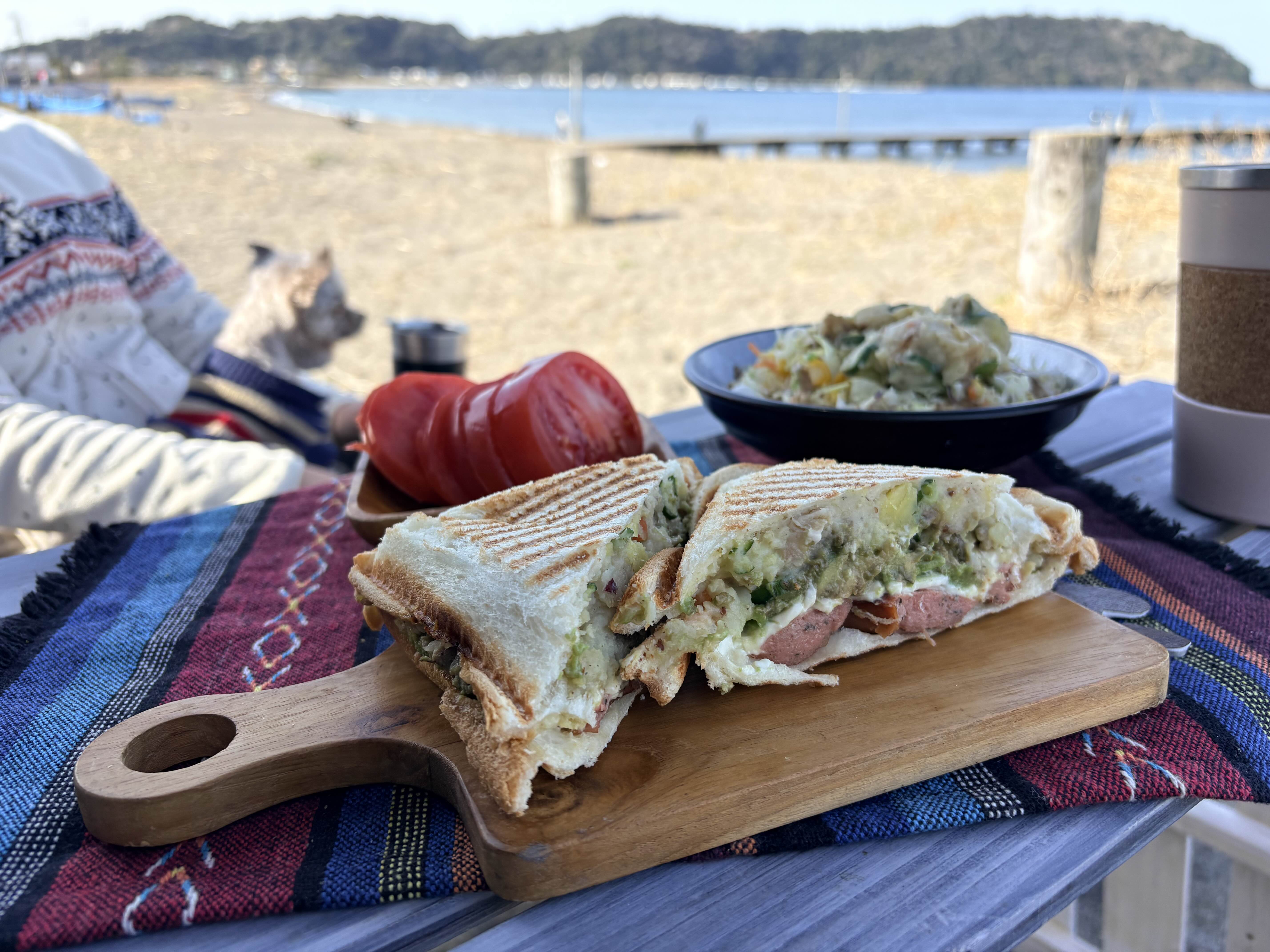 다음 날 아침은 금방 구워 낸 뜨끈뜨끈한 핫 샌드위치랑
