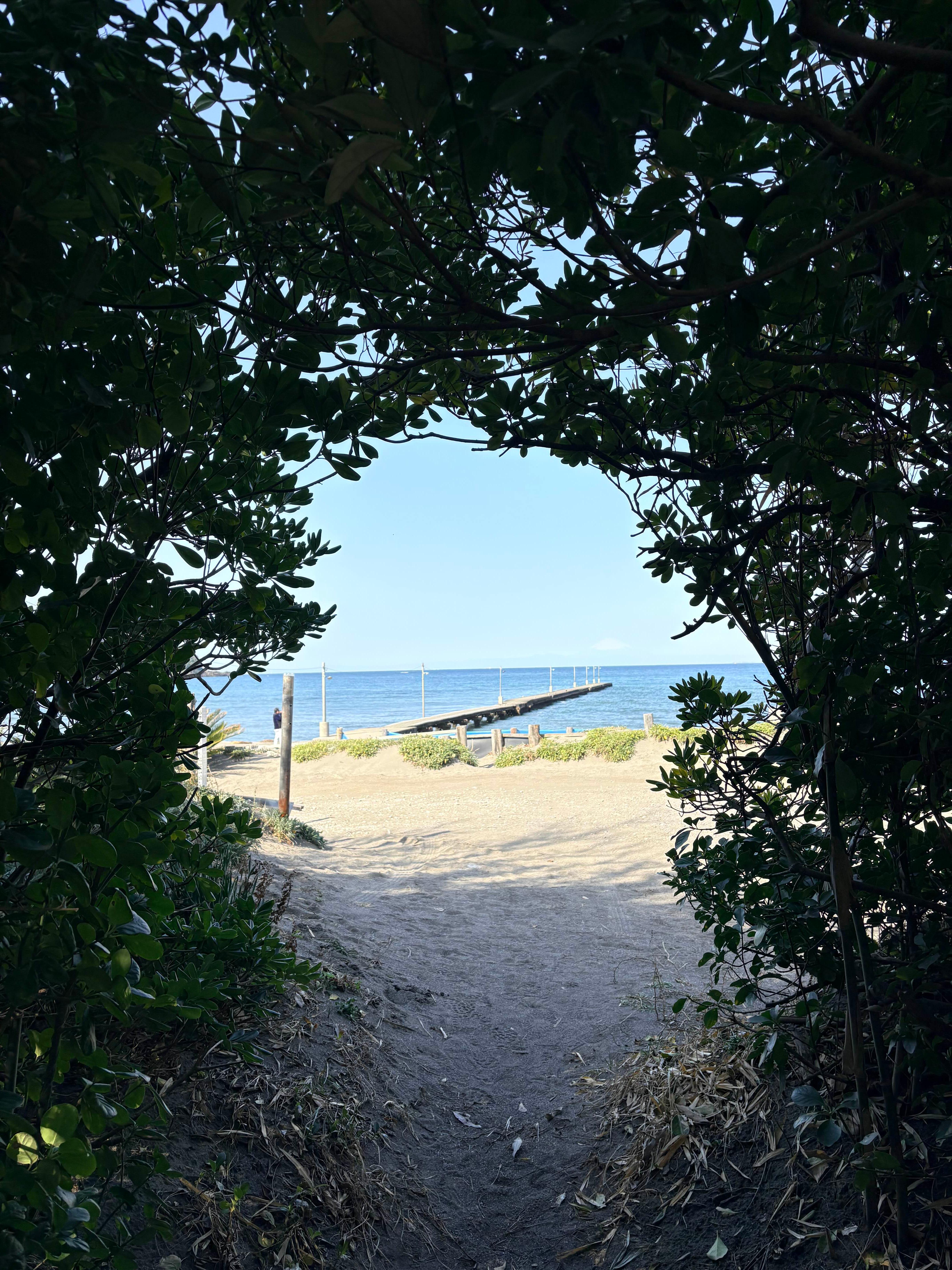 보일지 모르겠지만 바다를 향해 곧게 뻗은 자리 끝 오른쪽에 작게 보이는 하얀 구름 같은 것 저게 바로 후지산이다