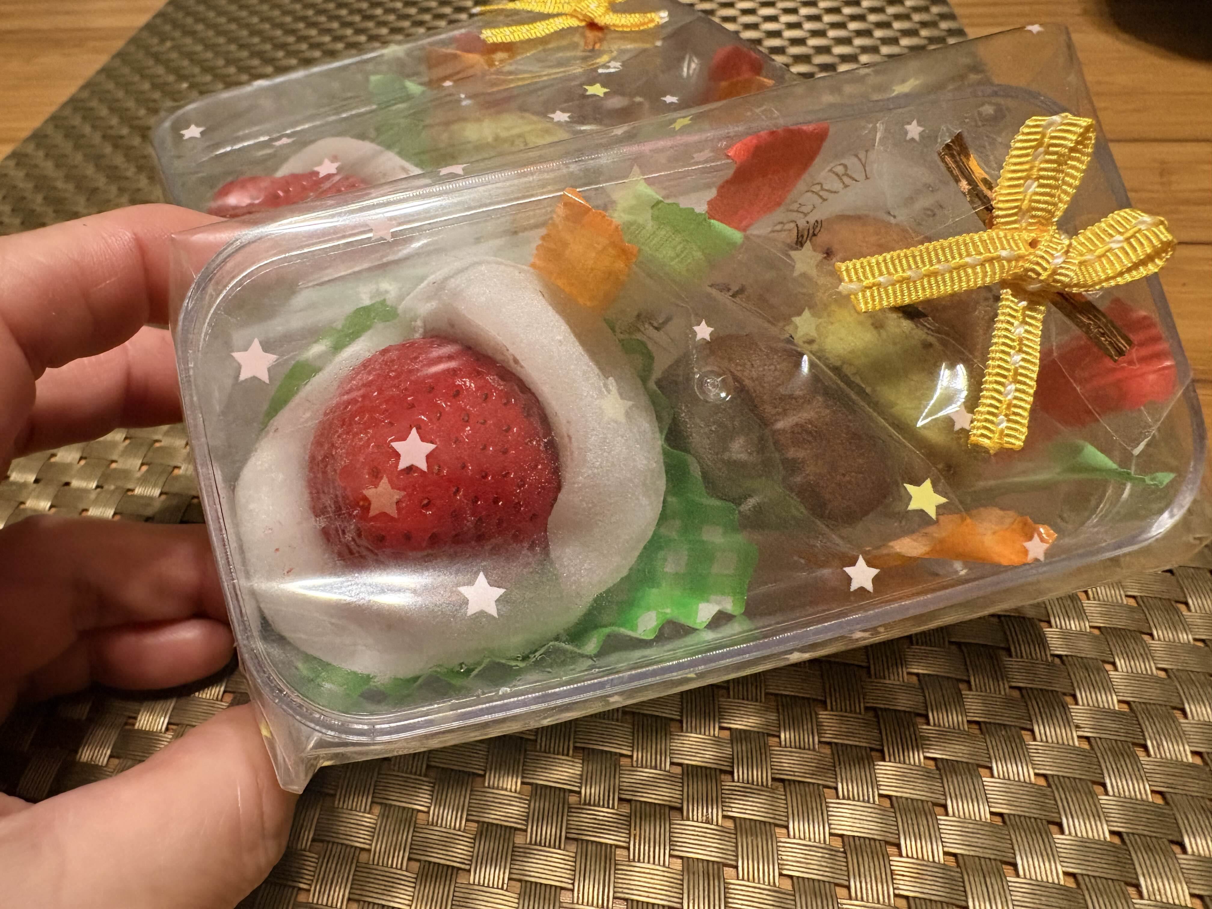 올해는 イチゴ大福( 딸기 떡) 이랑 쿠키를 넣어 한 세트로 만들었다