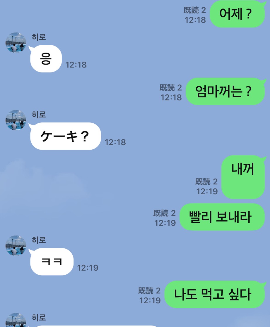 현재 한국에 있는 히로가 일본에 있는 엄마를 위해 화이트 데이에 케이크를 만들어 사진으로나마 엄마에게 보내는 사랑의 징표?