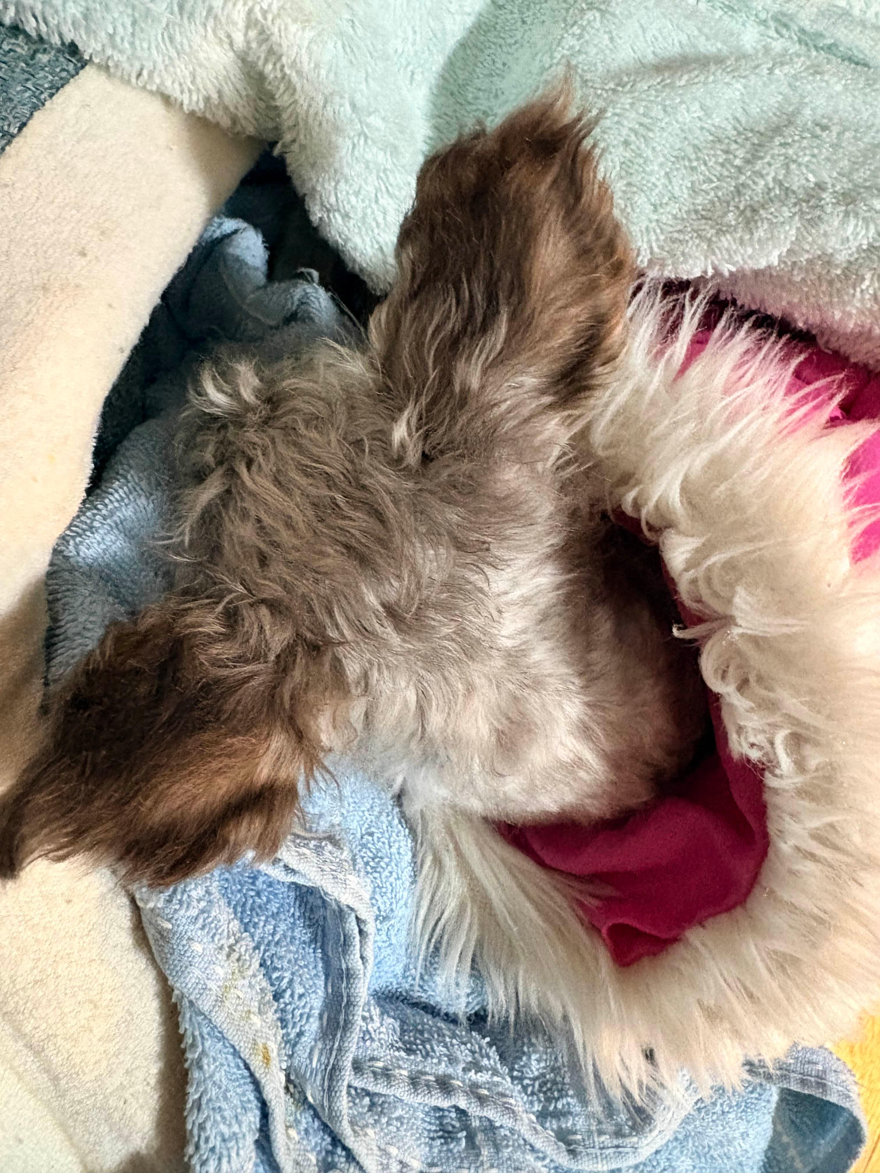 비록 안겨서 했던 산책이지만 꽤 길었던 산책이 피곤했는지 코를 골며 자고 있는 모꼬 …